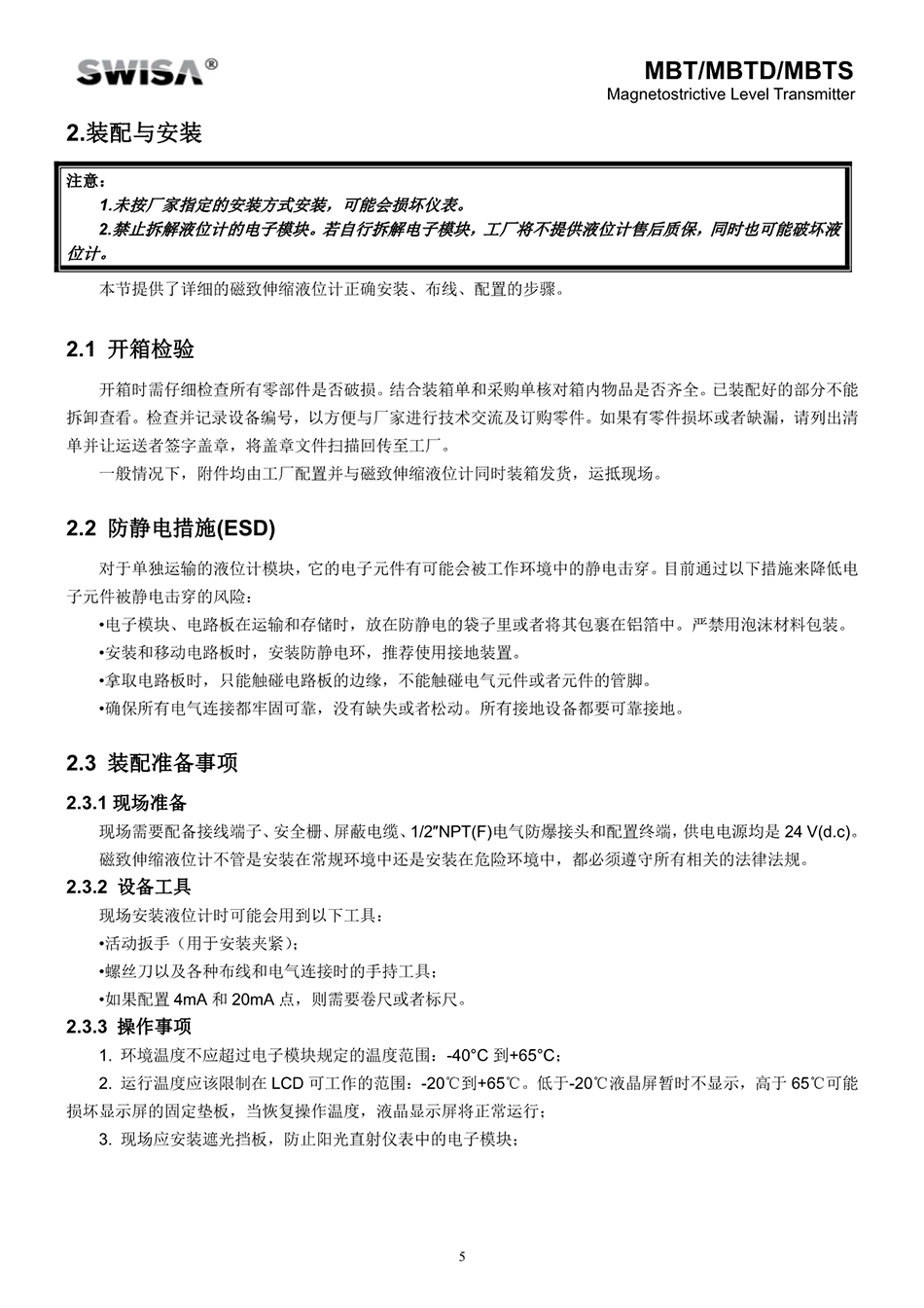 SWISA的新單腔磁致伸縮液位計(以下簡稱液位計)是具有品質的產品。液位計具有高精度、低維護的優點,可以在0~5MPa、0℃~149℃的工況中正常運行。它采用HART協議通訊,可以與大部分數字化控制系統進行通訊。LCD顯示屏可以提供三種顯示值:4~20mA電流、液位百分比及液位值